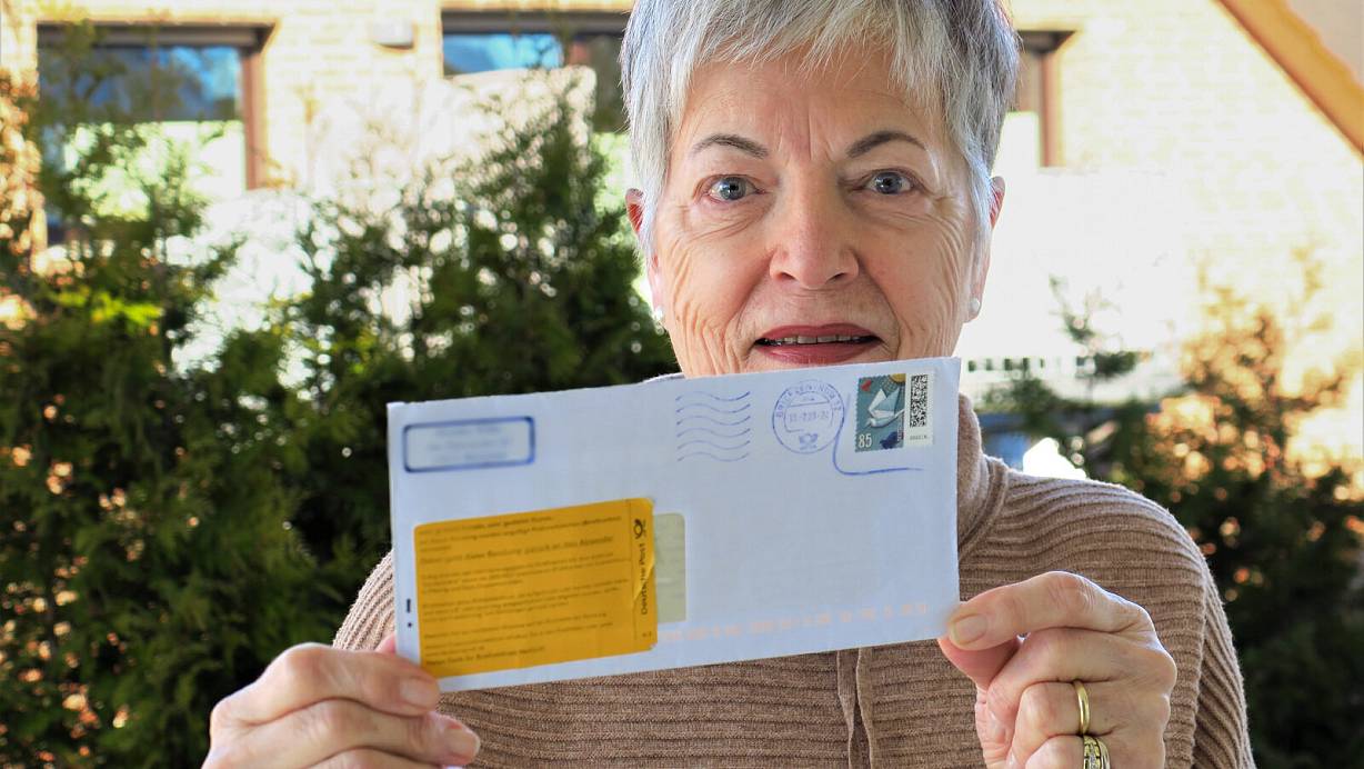 Monika Wilke hat das getan, was viele tun - eine nicht abgestempelte Briefmarke benutzt. Die Post kam zurück - mit vielen gelben Aufklebern und einer Warnung versehen. Seitlich rechts an der Marke ist die sogenannte Matrix zu sehen. | © Kurt Ehmke