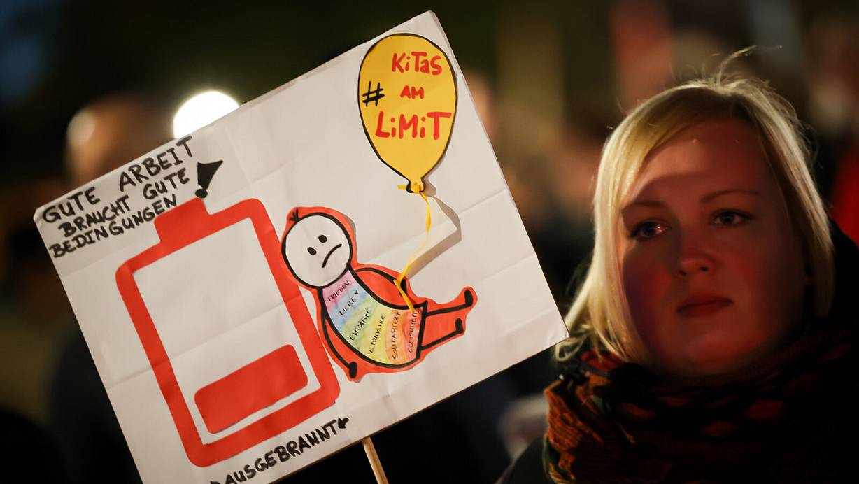Ausgebrannte Erzieherinnen fordern bei Verdi-Demonstrationen bessere Arbeitsbedingungen. | © picture alliance/dpa