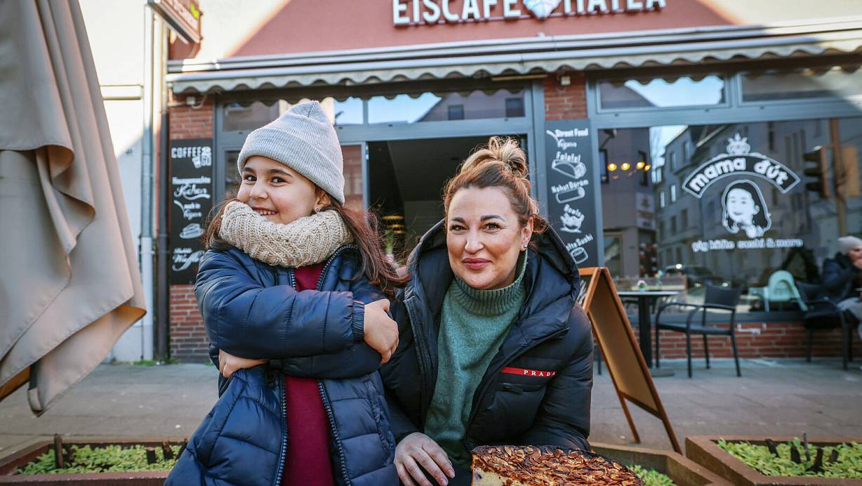 Mayla und Mama Sibel Güler präsentieren den "San Sebastian"-Käsekuchen. | © Sarah Jonek