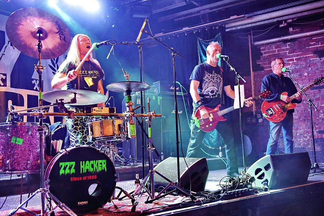 „Je oller desto doller“: Die Bielefelder Punkrocker von ZZZ Hacker geben ein großes virtuoses Konzert im Forum, anlässlich ihres 45-jährigen Bandbestehens. Für ihr „Hackerfest 2025“ hat sich die Combo reichlich Verstärkung besorgt. „Motörhell“ aus Italien werden dabei sein, Hardcore von „Foxglove“ wird den Laden vibrieren lassen, die heimischen „Randale“-Sandkastenrocker lassen dieses Mal ihre junge Fanbase zu Hause. „Supervan“ lassen’s mit Boomer-Rock krachen, und natürlich werden die Hacker – mitsamt ihrem „Mörderblumen-Hackerballett“ – auch auf der Bühne stehen. Übrigens: Die Ärzte aus Berlin verpassten der Band den Slogan: „Die faulste Band der Welt“. Dabei ist die Band eigentlich ständig überprobt, sodass gar keine Proben abseits der Bühne notwendig sind.