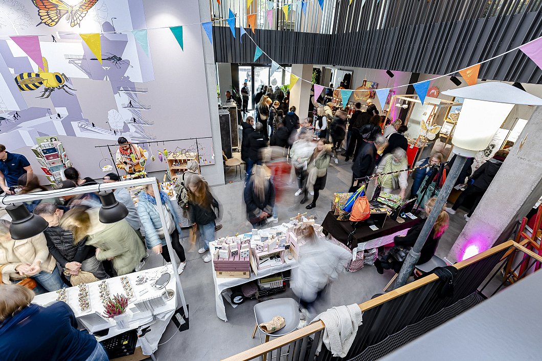 Zum siebten Mal findet der beliebte Kreativmarkt „Lobby der schönen Dinge“ in und an der Volksbank Bielefeld und der Frischen Mische. Mehr als 35 Aussteller präsentieren auch in diesem Jahr ihre schönsten Ideen aus Mode, Streetwear, Fotografie, Illustration, Vinyl, Streetart, Accessoires, Taschen, Spielzeug, feinen Leckereien, Schmuck, Interieur, Wohnaccessoires, Papeterie, Grafikdesign, Kinderprodukten, Produktdesign, Nachhaltigem, Second Hand und Upcycling. Dazu gibt’s Köstlichkeiten aus der Frischen Mische und dem Foodtruck von Dr. Vegetary, und Musik von Live-DJs – die perfekte Stimmung ist also garantiert! Für die kleinen Besucher steht bei gutem Wetter auf dem Vorplatz die Volksbank eine Hüpfburg zum Austoben bereit. Alle Produkte können direkt vor Ort gekauft werden.