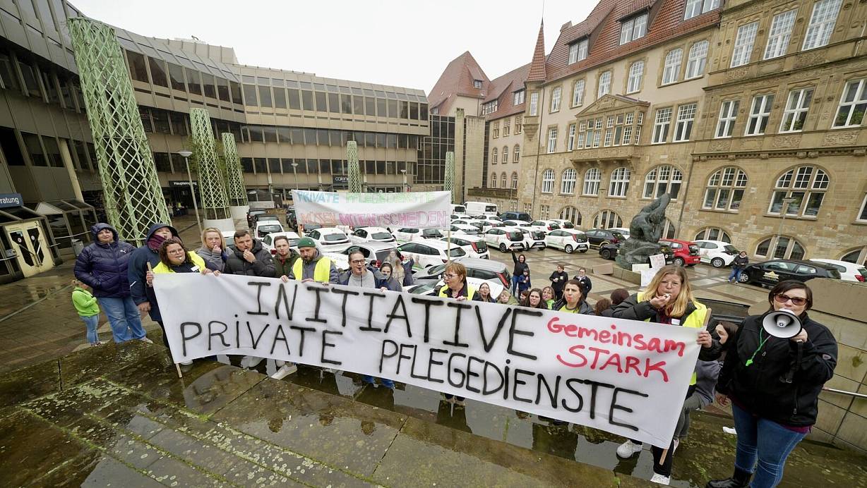 Der Protest der privaten ambulanten Pflegedienste vorm Rathaus in Bielefeld. | © Peter Unger