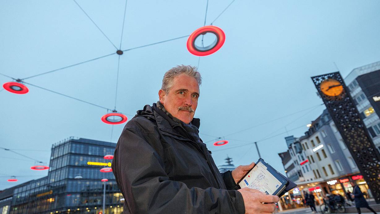 Christian Hüttner vom Amt für Verkehr steuert per Tablet die smarten Lichter. | © Oliver Krato