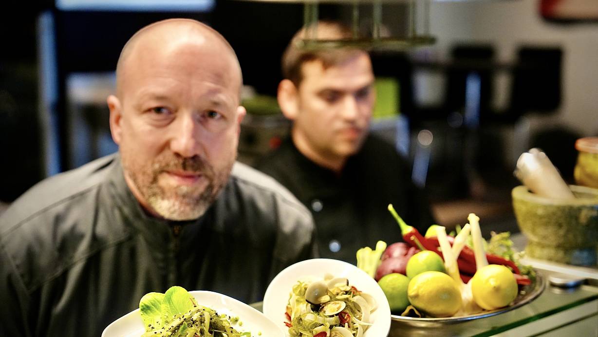 Links asiatisch, rechts mediterran - Lars Reddemann hat die Vielfalt der "Algella"-Nudel getestet und Neues für die Speisekarte kreiert. | © Peter Unger