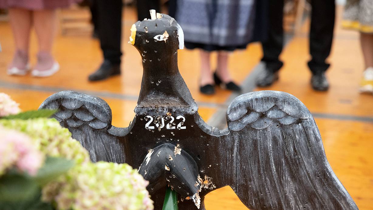 Der Adler hatte beim Königsschießen 2022 ziemlich gelitten. Es dauerte lange, bis er vom Sockel fiel. | © Oliver Krato