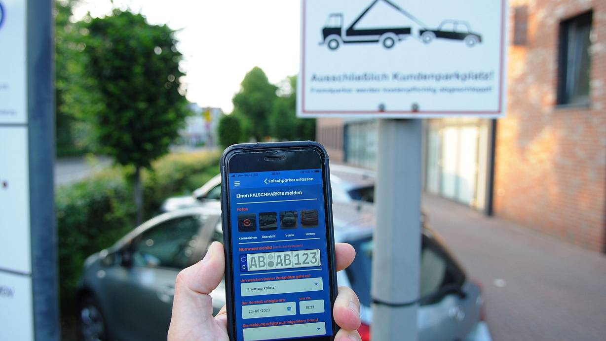 Die Handy-App ermöglicht es Privatparkplatz-Besitzern, mit einem Foto Falschparker zur Zahlung eines Schadenersatzes aufzufordern. Nicht nur an der Höhe der Summe gibt es Kritik. | © Jens Reichenbach