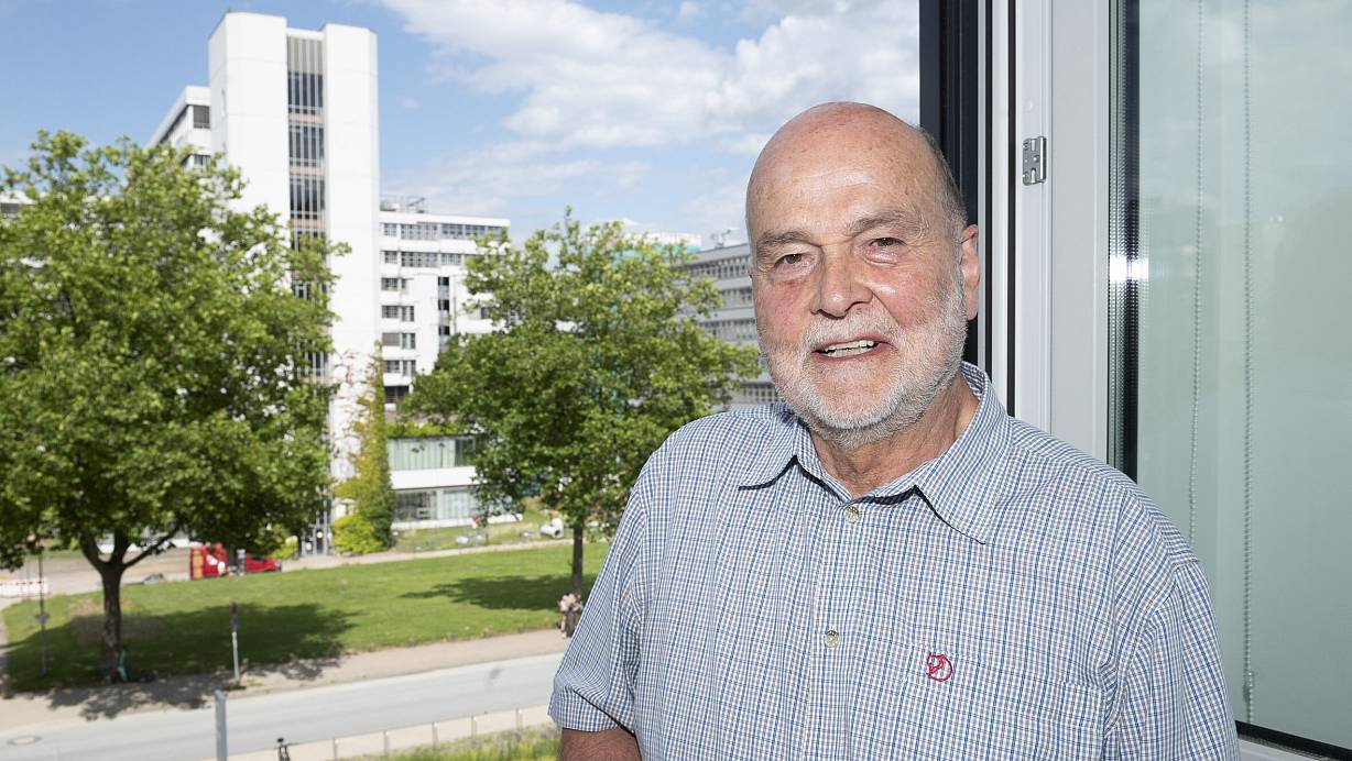 „Ein Privileg“ sei sein Büro im Gebäude Z der Universität Bielefeld, sagt Ex-Rektor Dieter Timmermann (80). Von hieraus verfolgt er weiter die Entwicklungen an der Uni. | © Jörg Dieckmann - www. dieckmann-fotodesign.de