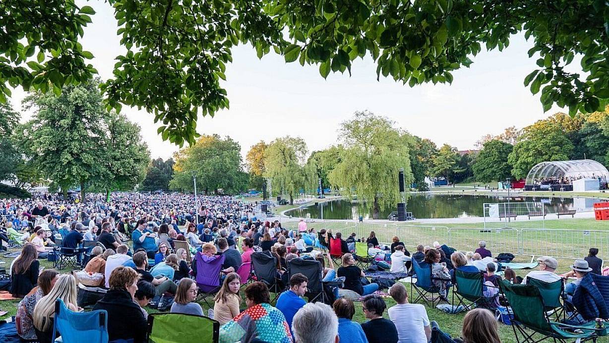 An vier aufeinanderfolgenden Tagen, vom 18. bis 21 August, lädt die Konzertreihe „vielHarmonie“ mit einem bunten und vielfältigen Programm zum „philharmonischem Picknick“ im Park. Den Auftakt geben am Freitag, den 18. August 2023 (Einlass: 17 Uhr) die Bielefelder Philharmoniker unter der Leitung von Generalmusikdirektor Alexander Kalajdzic gemeinsam mit Deutsch-Rapper Max Herre, dem Flötisten Magnus Lindgren und der Jazz-Band „Web Web“.