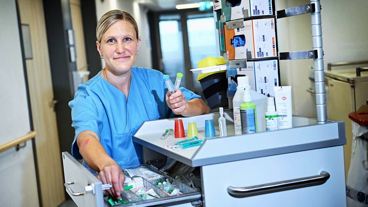 Die richtige Medizin in der richtigen Dosis für den richtigen Patienten: Pflegefachkraft Nadine Naujok (41) erklärt im interaktiven Video, worauf es in ihrem Job ankommt. | © Barbara Franke