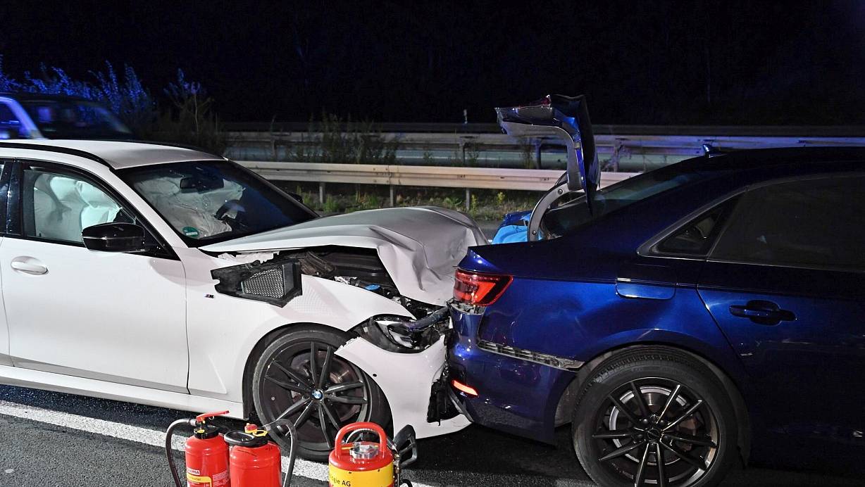 Kurze Vollsperrung. 30-jähriger BMW-Fahrer kann das Blaulicht der Polizei nicht sehen und prallt mit großer Wucht in den Vordermann.