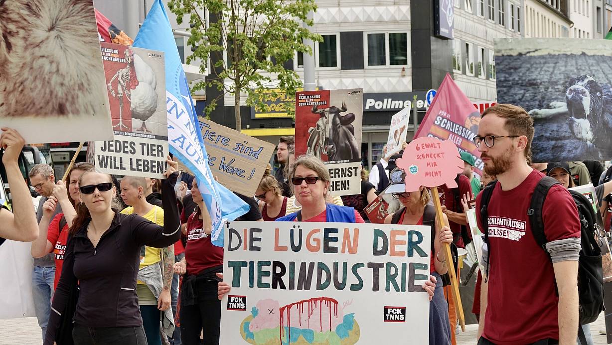 Demonstranten in Bielefelder Innenstadt fordern Schließung aller Schlachthäuser