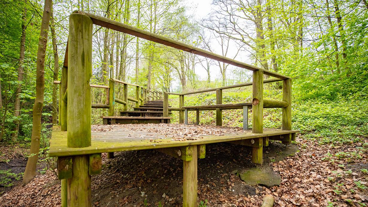 Der hölzerne Zugang zur Bullerbachquelle ist morsch, die Umrandung niedergerissen. Aus Sicherheitsgründen darf er nicht mehr betreten werden. | © Mike-Dennis Mller / www.mdm.photo
