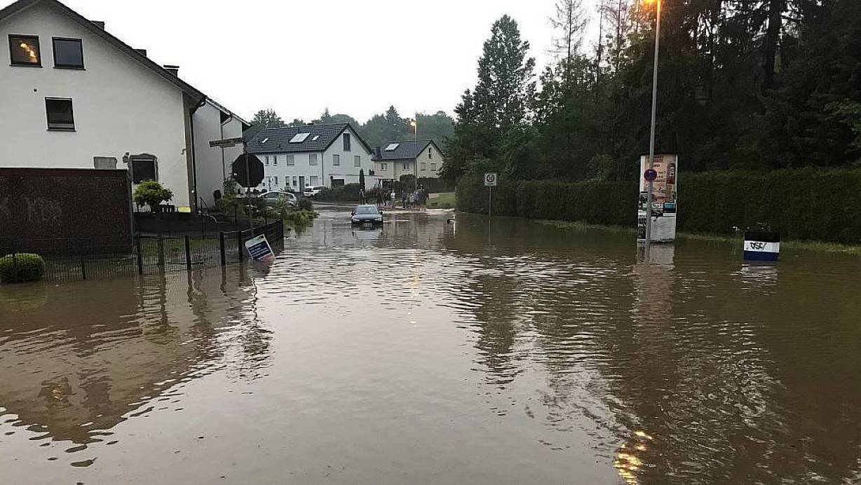 Überschwemmung nach Starkregenfällen im Bielefelder Stadtteil Brake. Viele kleine Speicherorte für Regenwasser sollen helfen - auch den Bäumen. | © Christian Mathiesen