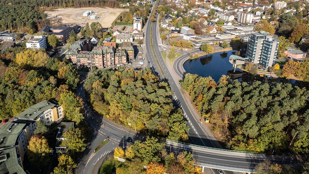 Auf der ehemaligen Industriebrache der Firma Schilling (oben links) wächst die Klimaschutzsiedlung. Das innovative Konzept findet in Deutschland und darüber hinaus Beachtung. In Bielefeld wird es angesichts der derzeitigen Absatzflaute von Teilen der Politik offenbar wieder kritisch gesehen. | © Mike-Dennis Müller / www.mdm.photo
