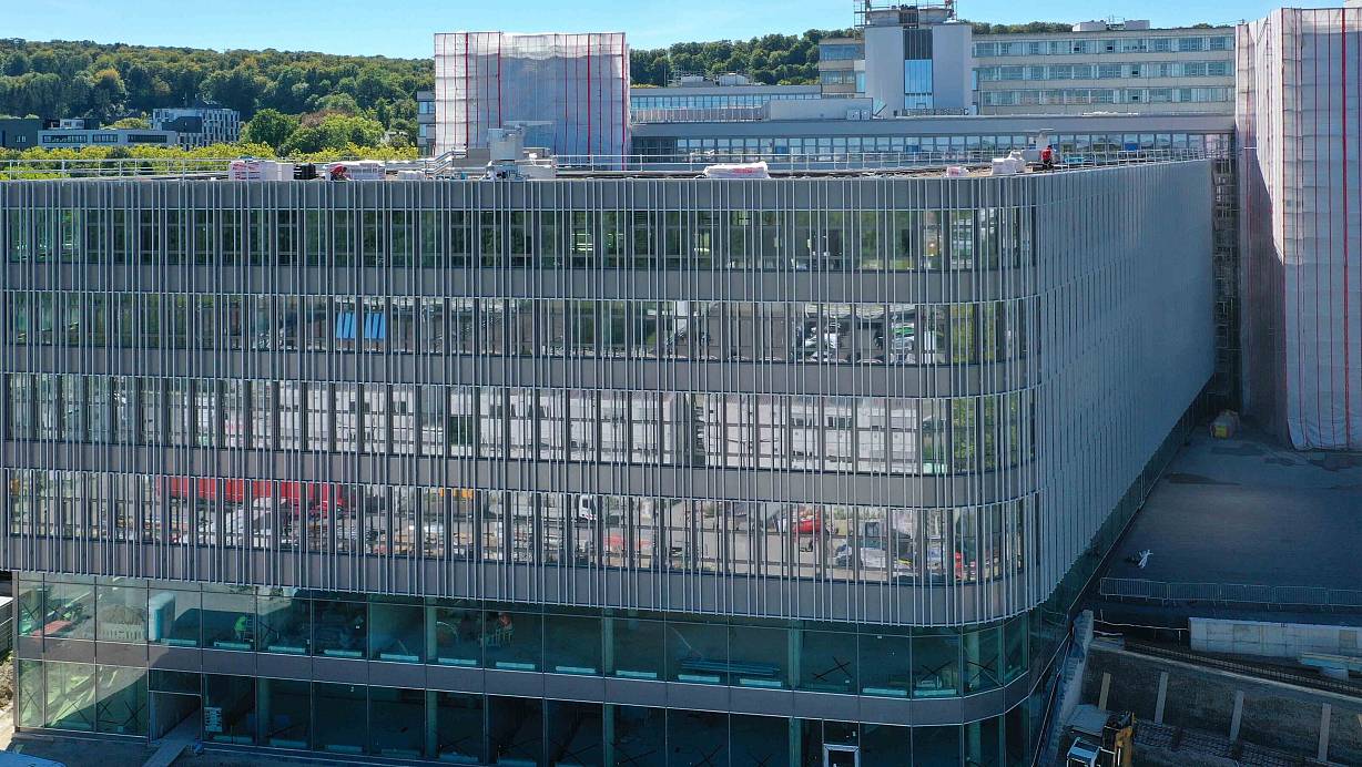 Mit der Fertigstellung der neuen Fassade wurde laut Bauherr BLB (Bau- und Liegenschaftsbetrieb NRW) ein wichtiger Meilenstein bei der Sanierung des ersten Sanierungsabschnittes mit einer Größe von rund 75.300 Quadratmetern Bruttogeschossfläche erreicht. "Wir bekommen einen Eindruck, wie modern und attraktiv sich unser Uni-Gebäude zukünftig präsentieren wird“, Sagt Uni-Kanzler Stephan Becker.