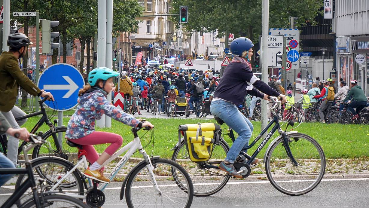 Zur Fahrraddemo Kidical Mass in Bielefeld kamen Hunderte Kinder und Erwachsene. | © Kristoffer Fillies