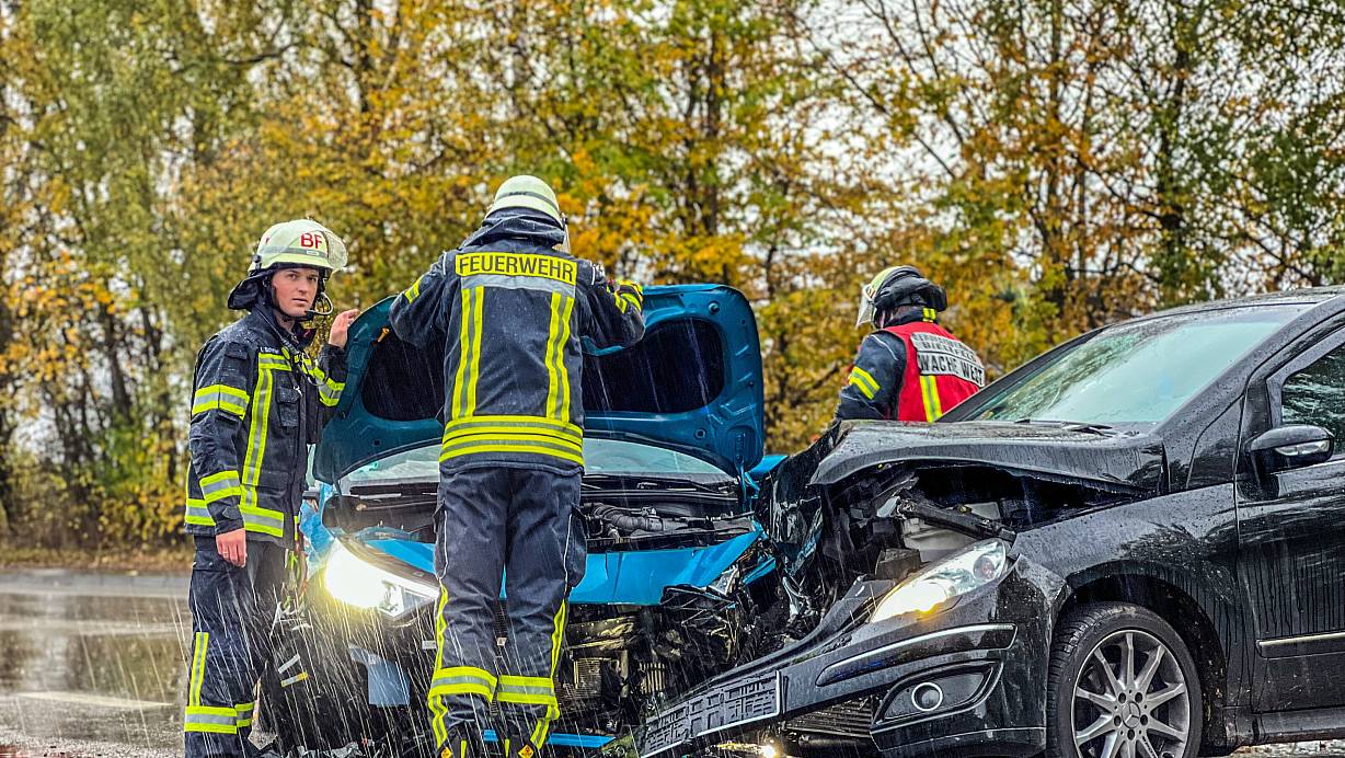 Nach dem Zusammenstoß zweier Pkw musste die Jöllenbecker Straße voll gesperrt werden. Drei Personen wurden bei dem Unfall verletzt. Den Sachschaden schätzt die Polizei inzwischen auf 50.000 Euro.