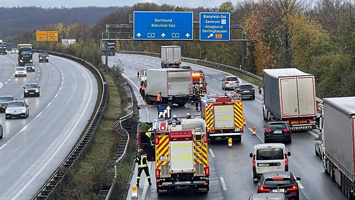 A2 bei Bielefeld nach Unfall 80 Minuten voll gesperrt: Rückstau bis Herford