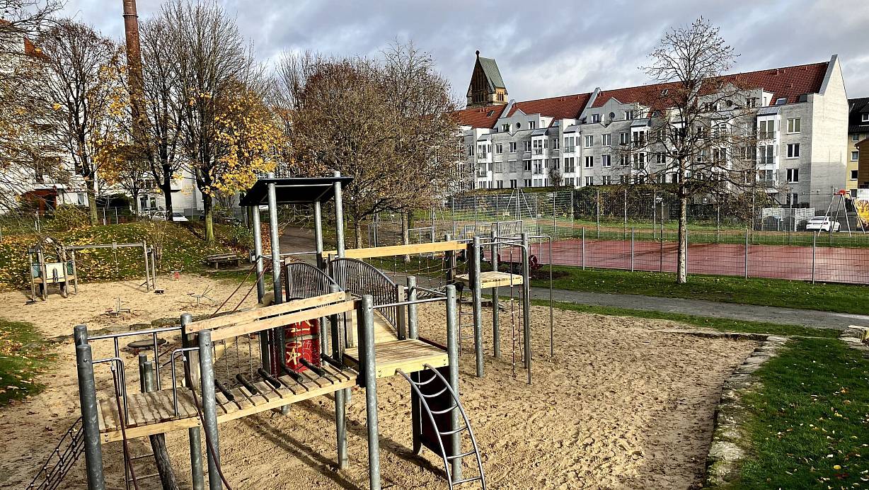 Tatort Spielplatz: An der Huelsmannstraße (zwischen Herforder und August-Bebel-Straße) fanden damals zwei Mädchen das Mordopfer in einem Gebüsch. | © Jens Reichenbach