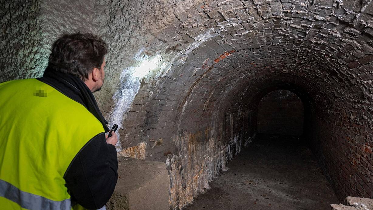 Gut sichtbar sind die runden Backsteinwände, die an dieser Stelle nachträglich mit Beton verputzt wurden. Das Ende des Stichtunnels ist zugemauert. | © Jörg Dieckmann - www. dieckmann-fotodesign.de