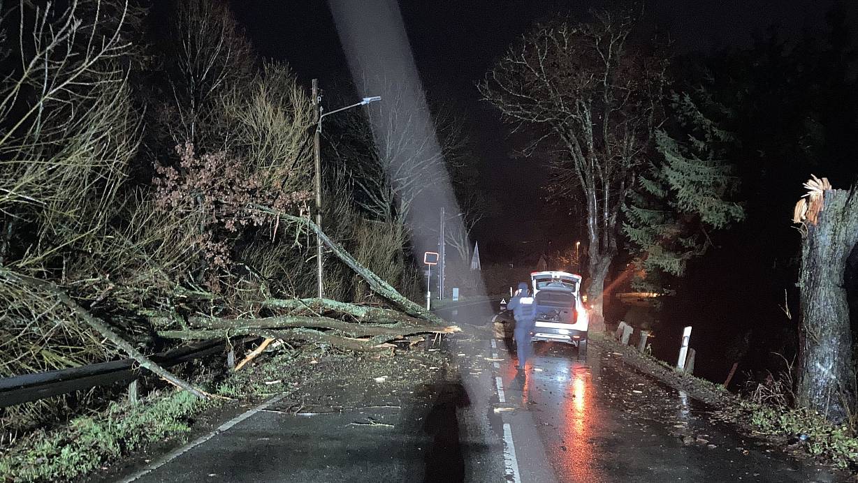 Sturm-Unfall: Bielefelder Auto rammt riesigen umgestürzten Baum