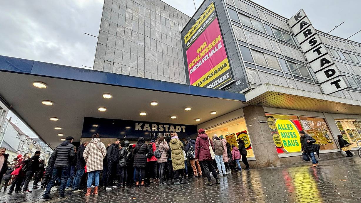 Kunden werden an der Tür abgezählt: Großer Ansturm vor dem Bielefelder Karstadt-Aus