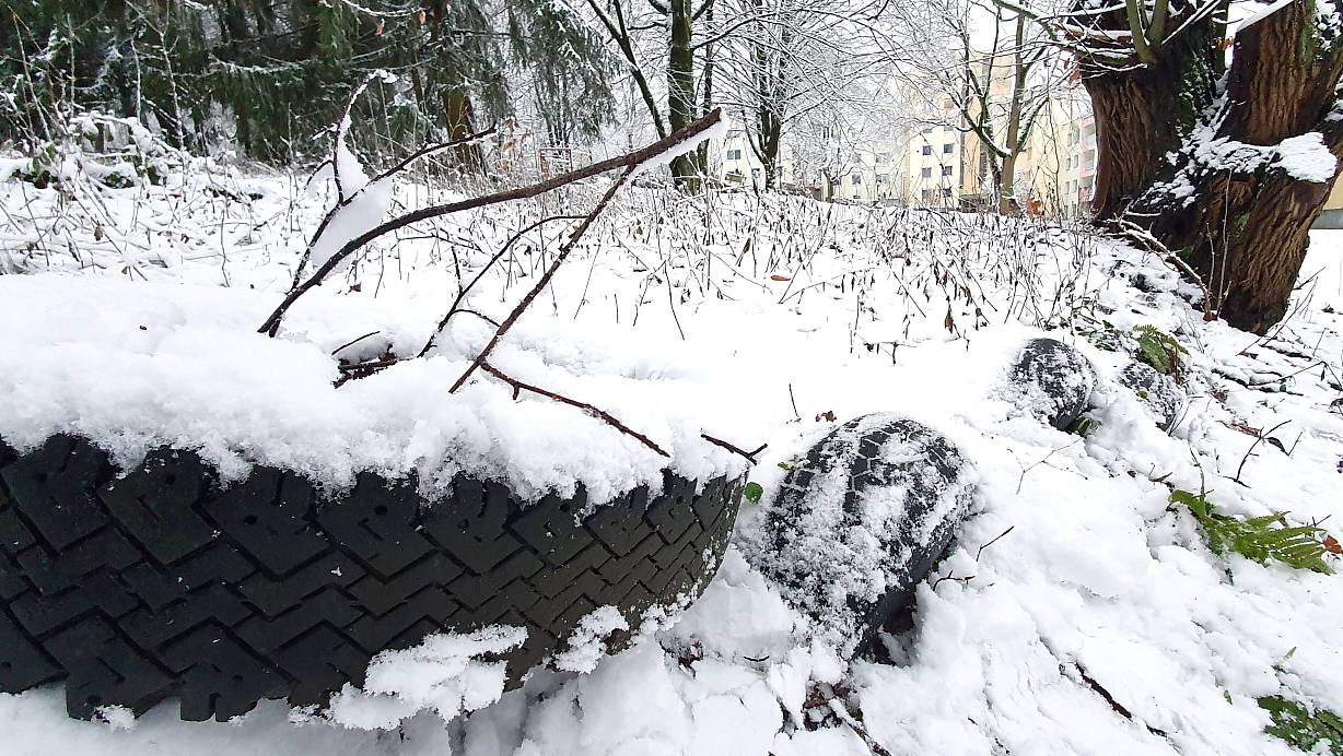 Altreifen sind an den Rändern des Spielplatzes (zum Wald hin) haufenweise zu entdecken, derzeit unter dem Schnee, teilweise unter Laub. | © Kurt Ehmke