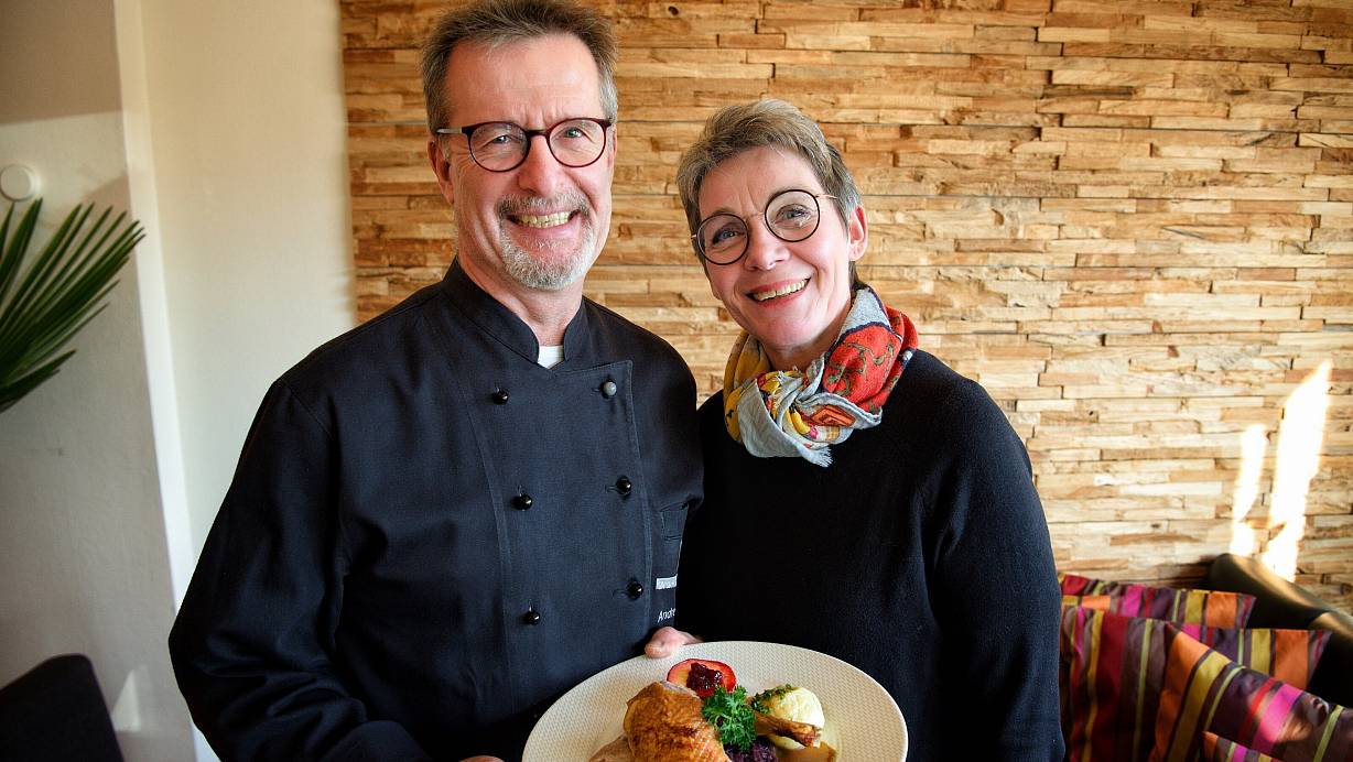 Andreas Hoffmann und Beatrix Bartsch-Hoffmann servieren Entenbrust und -keule mit Preiselbeerapfel und Kartoffelkloß. | © Michaela Heinze
