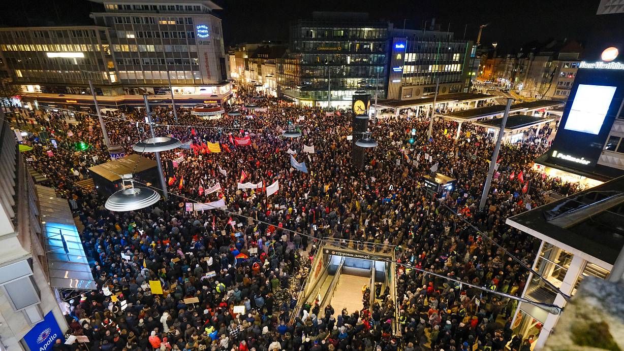 Blick auf die Rekord-Demo: Deutlich mehr als 25.000 Menschen versammelten sich am Dienstag auf dem Jahnplatz und in den angrenzenden Straßen. Die Abgänge zum Jahnplatz-Forum mussten aus Sicherheitsgründen noch kurzfristig gesperrt werden. | © Andreas Zobe