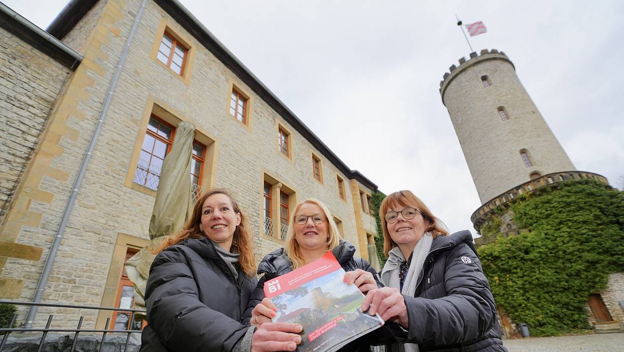 Suchen den neuen Pächter für die Sparrenburg: (von links) Eva Schreiber, Deborah Becker (beide Immobilienservicebtrieb) und Gabriela Lamm (Bielefeld Marketing). | © Peter Unger