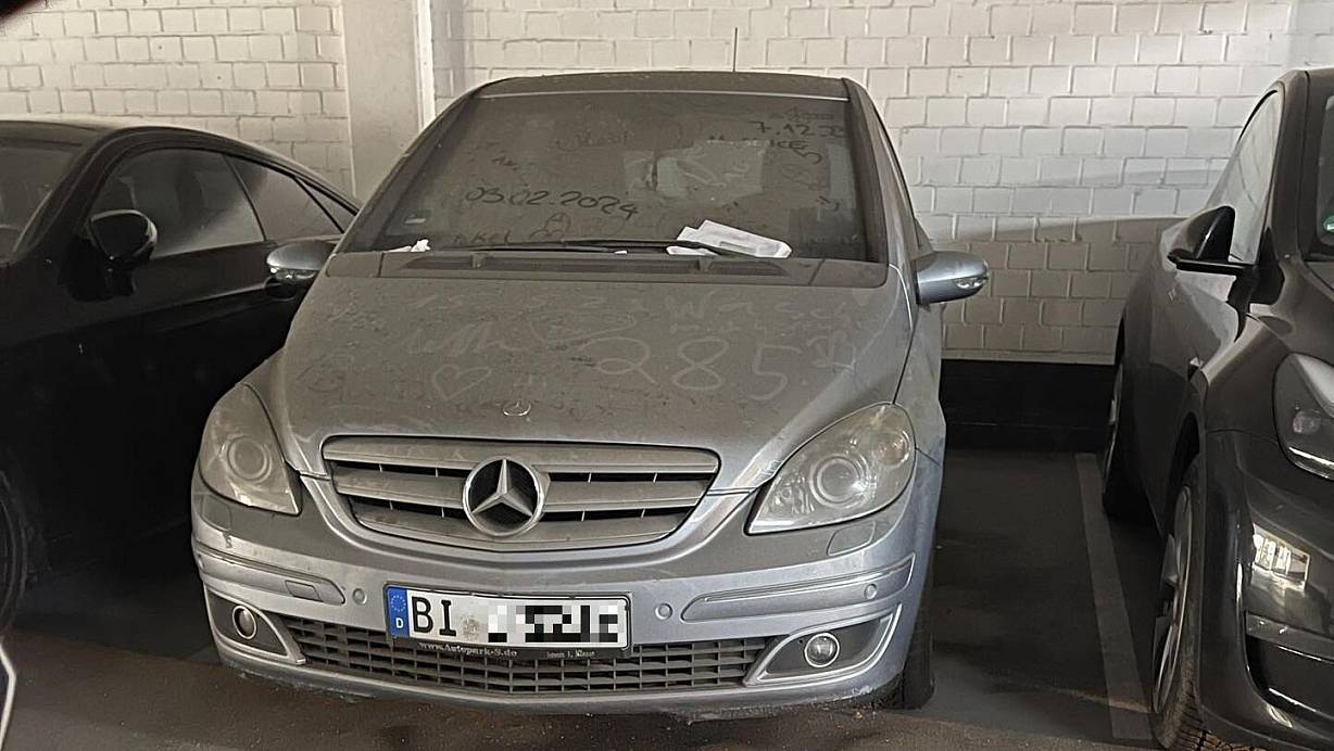 Dieser Bielefelder Mercedes ist wohl aufgegeben worden. Er steht seit rund zwei Jahren in einem Parkhaus in Hilden. | © privat