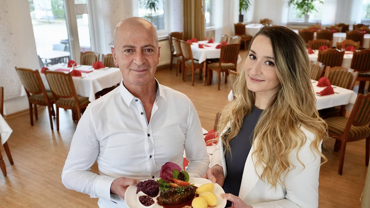 Halil Oduncu und Vlora Berisha präsentieren die beliebte Rinderroulade nach Art des Hauses. | © Peter Unger