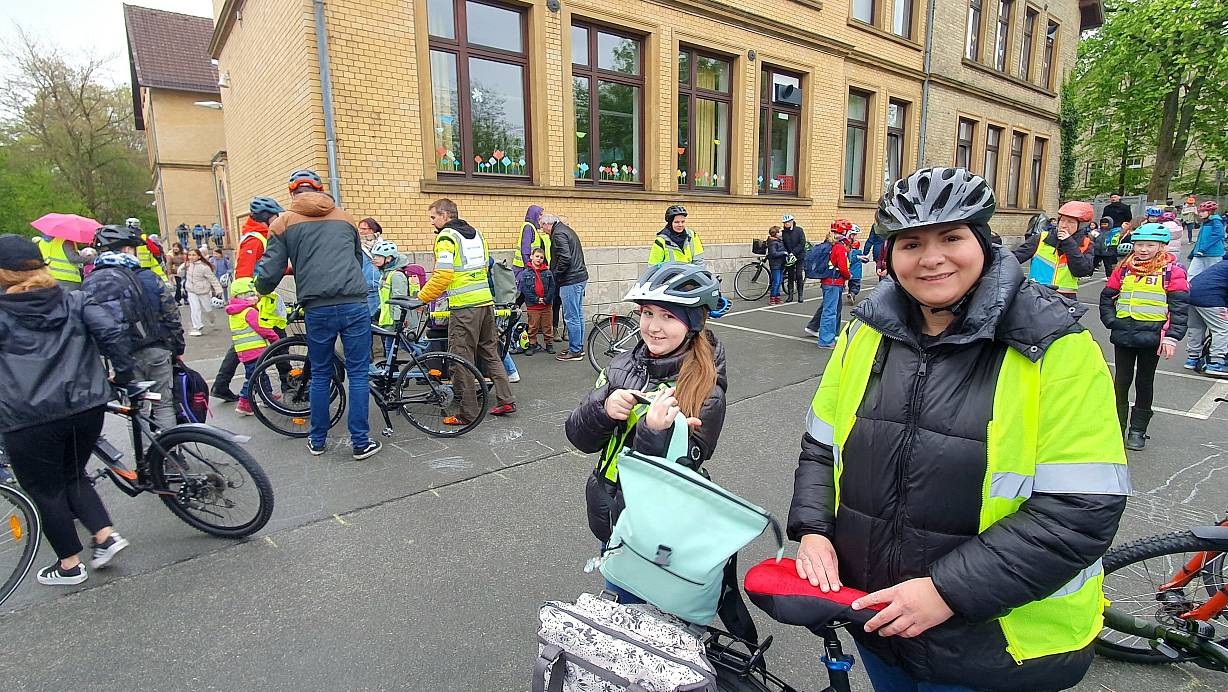 Eltern und Schule haben die besondere Aktion angeschoben, organisiert, und natürlich zu Beginn der Sommersaison, damit sich vielleicht etwas einschleift, bei besserem Wetter, was dann zur Gewohnheit wird. Schulleiter Marlon Hollmann-Rippe: „Das ist aktive Verkehrserziehung in der Praxis, und es steigert die Kindesgesundheit, was nach Corona auch laut Weltgesundheitsorganisation dringend notwendig ist.“
