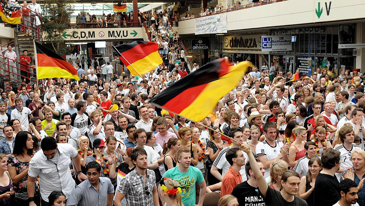 Bei der Fußball-WM 2010 war beim Public Viewing in der Bielefelder Unihalle die Begeisterung riesig: Deutschland gegen Argentinien - 4:0 | © BARBARA FRANKE