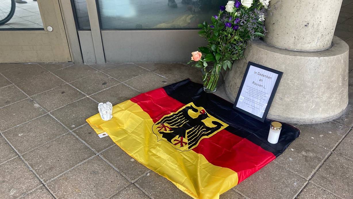 An der Stadtwache im Bielefelder Rathaus wurde eine kleine Gedenkstätte für den ermordeten Polizisten Rouven L. eingerichtet. | © Michael Schläger