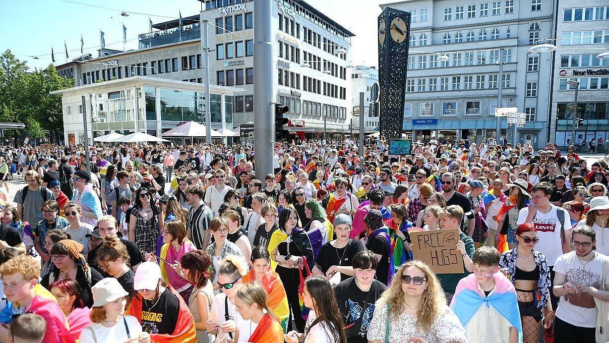 Bunt und fröhlich, aber auch von Übergriffen überschattet: Der CSD 2023 in Bielefeld. | © Barbara Franke
