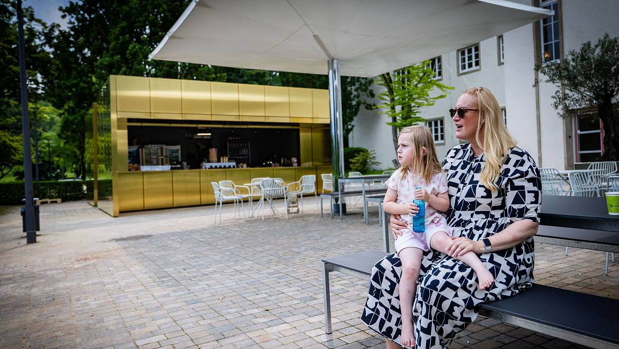 Die Außengastro an der Rudolf-Oetker-Halle hat eröffnet. Cristiane und ihre Tochter gehören zu den ersten Gästen. | © Sarah Jonek Fotografie