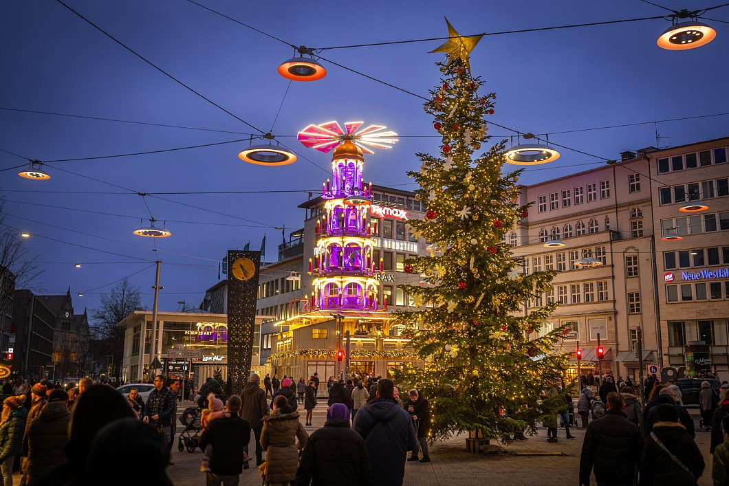 Er gehört zu den Besuchermagneten in der Region und ist einer der größten Märkte seiner Art in Nordrhein-Westfalen – der Bielefelder Weihnachtsmarkt in der Innenstadt. Am Donnerstag, 20. November, ist es so weit, das beliebte Event öffnet seine Türen. Eine Neuheit in diesem Jahr: Erstmals in seiner Geschichte wird der Bielefelder Weihnachtsmarkt von einer Oberbürgermeisterin eröffnet werden. Zu den Highlights zählt zudem wieder die größte Weihnachtspyramide in ganz NRW auf dem Jahnplatz.