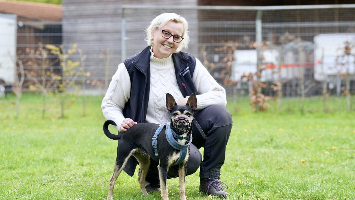Hunden sieht man ihre Verhaltensprobleme nicht immer an. Schnauzermischling Patu etwa, hier mit Tierheimleiterin Jutta Schaper, wirkt eigentlich ganz harmlos. Doch den Maulkorb trägt er aus gutem Grund. | © Peter Unger