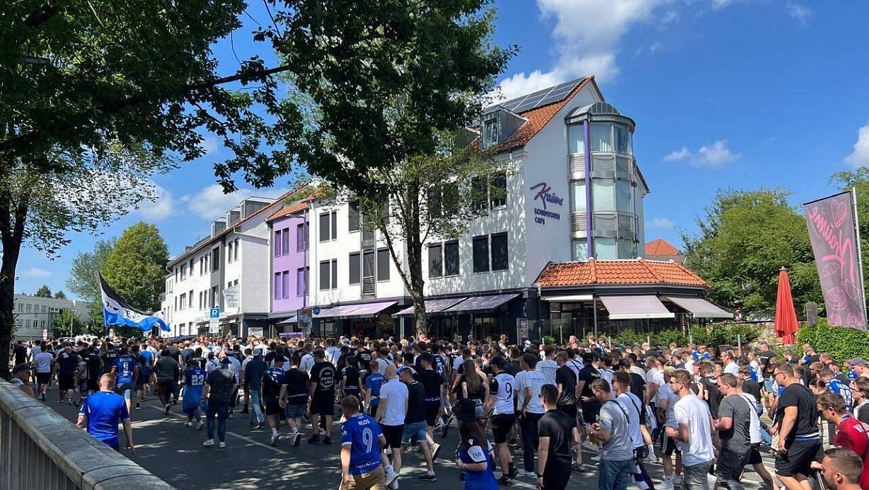 Staus und Applaus beim Fanmarsch der Arminia-Ultras durch Bielefeld