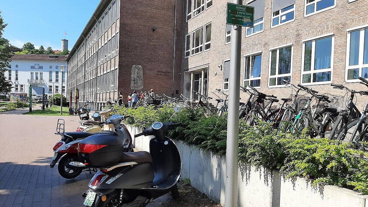 Kein Platz fürs Vespas und Co.: Auch vor dem Gymnasium am Waldhof am Park der Menschenrechte bekamen Rollerfahrer immer wieder Knöllchen. | © NW