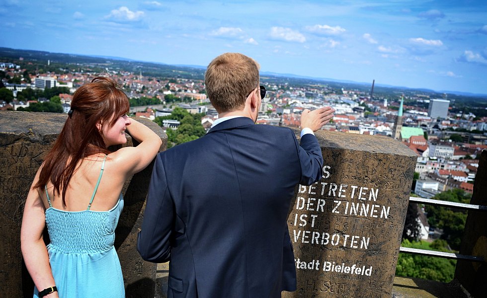 Bielefeld. Die Burg. Mitten in der Stadt. Jeder kennt das Wahrzeichen, das alte Gemäuer mit dem stattlichen Turm thronend hoch über dem Ossi. Standardprogramm für jede Gästeführung – und immer wieder ein begehbares wie erhabenes Erlebnis: der Blick über die Dächer der Stadt in die weite Ferne.