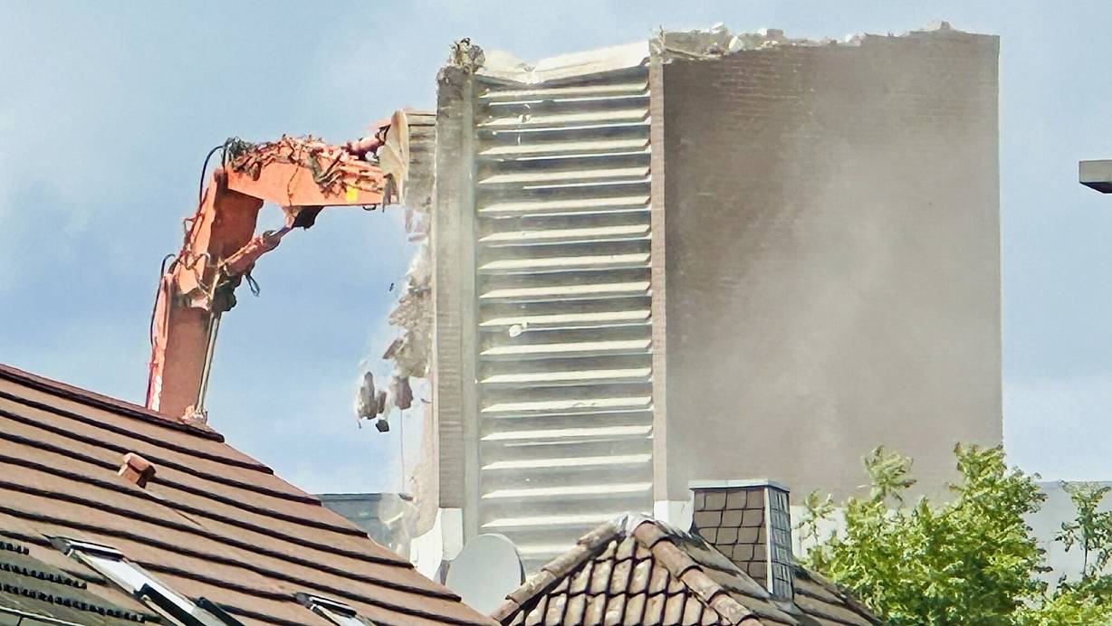 Der Abriss des Kirchturms glich einem Kampf der Elemente und dauerte Stunden – die Strategie des Mannes in der Stahlkanzel ging auf. Nun entsteht dort Neues.