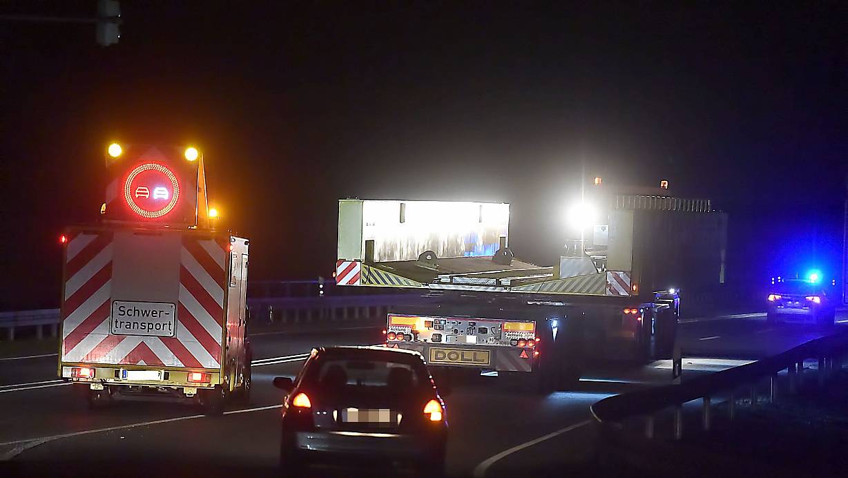 Die Fahrerin eines solchen Schwertransport-Begleitfahrzeugs – hier beim Transport einer Eisenbahn-Verschiebebühne – erkannte die Gefahr und reagierte geistesgegenwärtig. | © www.sportpictures.de