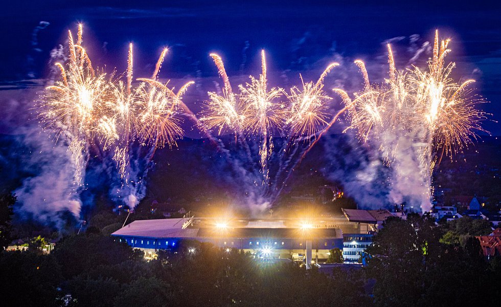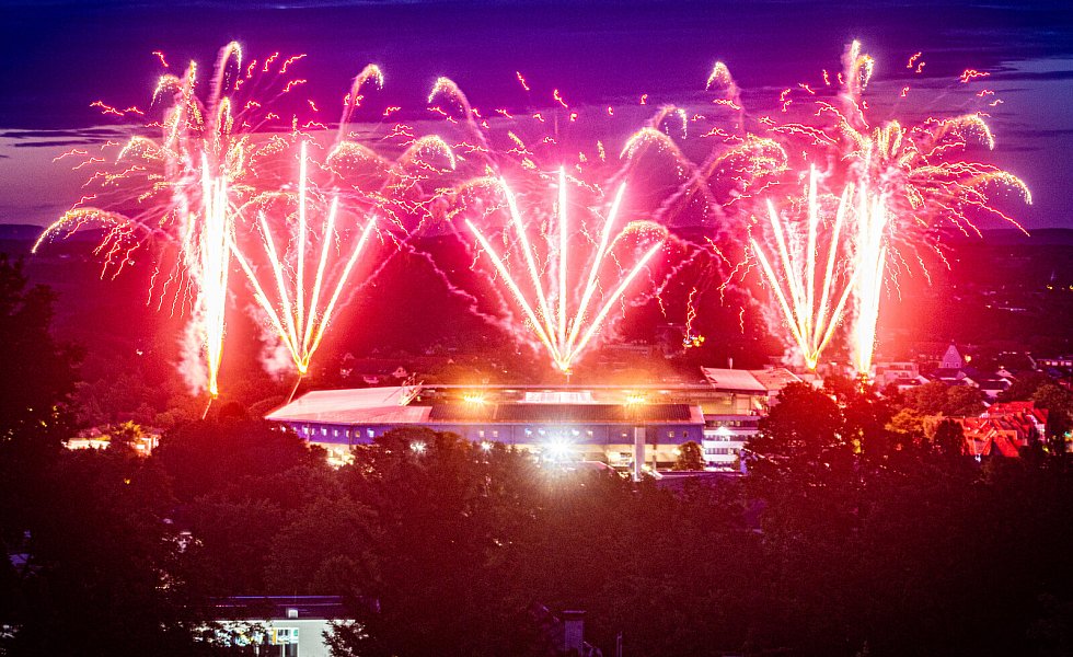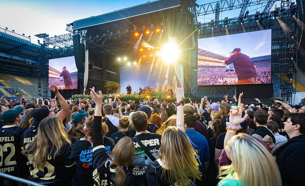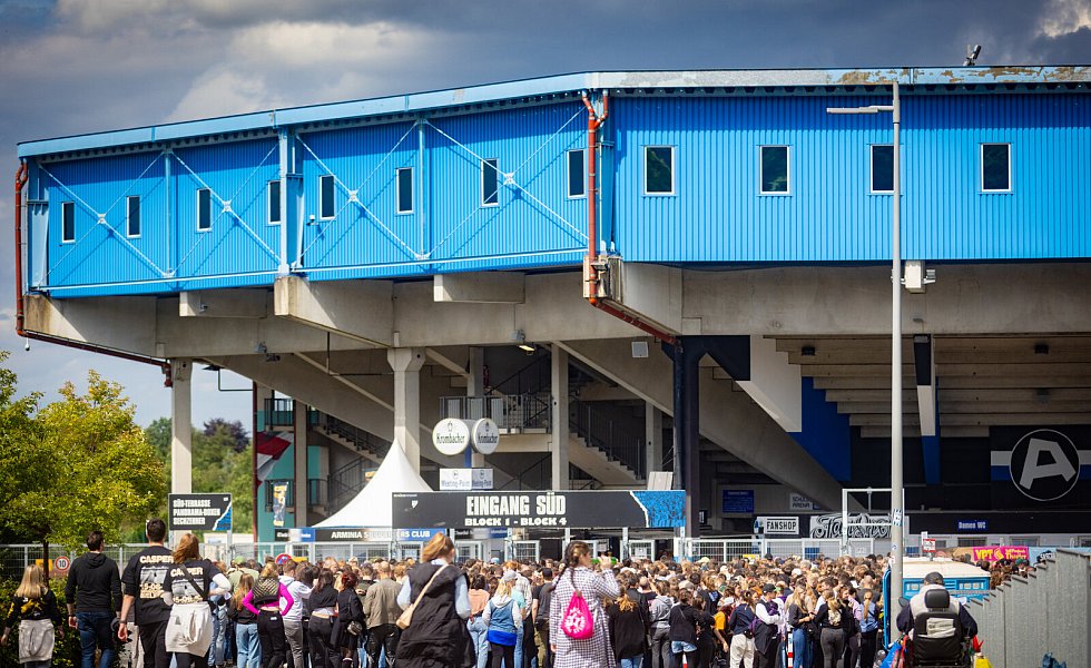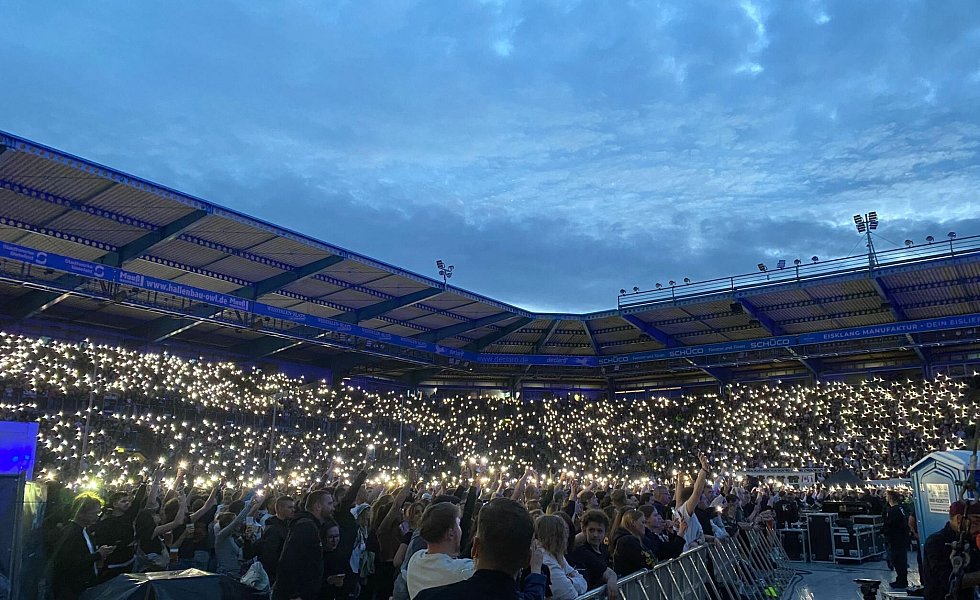 „Der Wunsch, irgendwann in Bielefeld im Stadion zu spielen, war schon ganz früh da", sagt Casper. Am 15. Juni 2024 war es soweit: 28.000 Fans feierten auf dem Rasen und den Rängen der Alm, ein großes Feuerwerk beendete die spektakuläre Show.