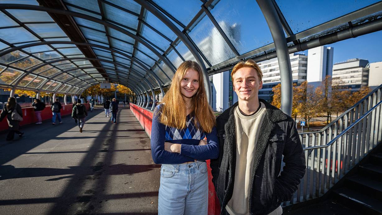 Lara Hochweller und Thomas Schoer vor der Uni Bielefeld, ihrem "neuen zu Hause". Beide zogen für das Studium nach Bielefeld. | © Sarah Jonek