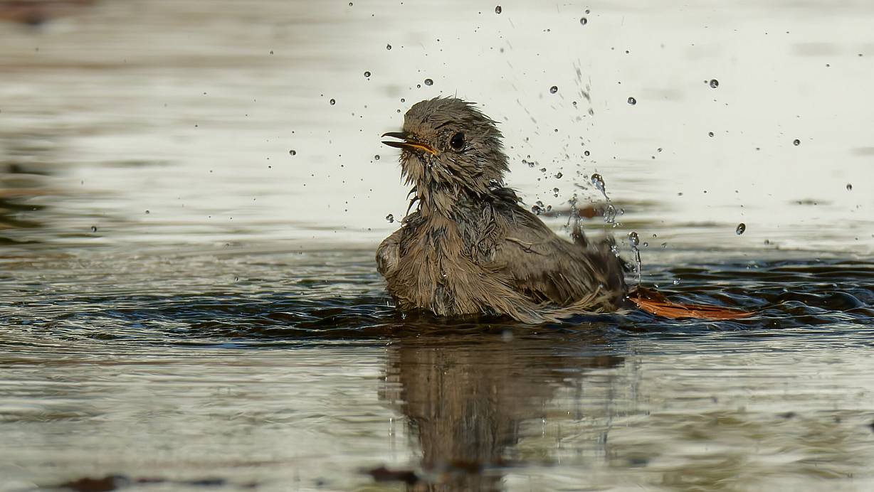 Ein Weibchen beim Baden: Vogel des Jahres ist der Hausrotschwanz - diese reinliche Dame könnte auch auf jedem Werbeplakat für ein Freibad posieren. | © Andreas Schäfferling