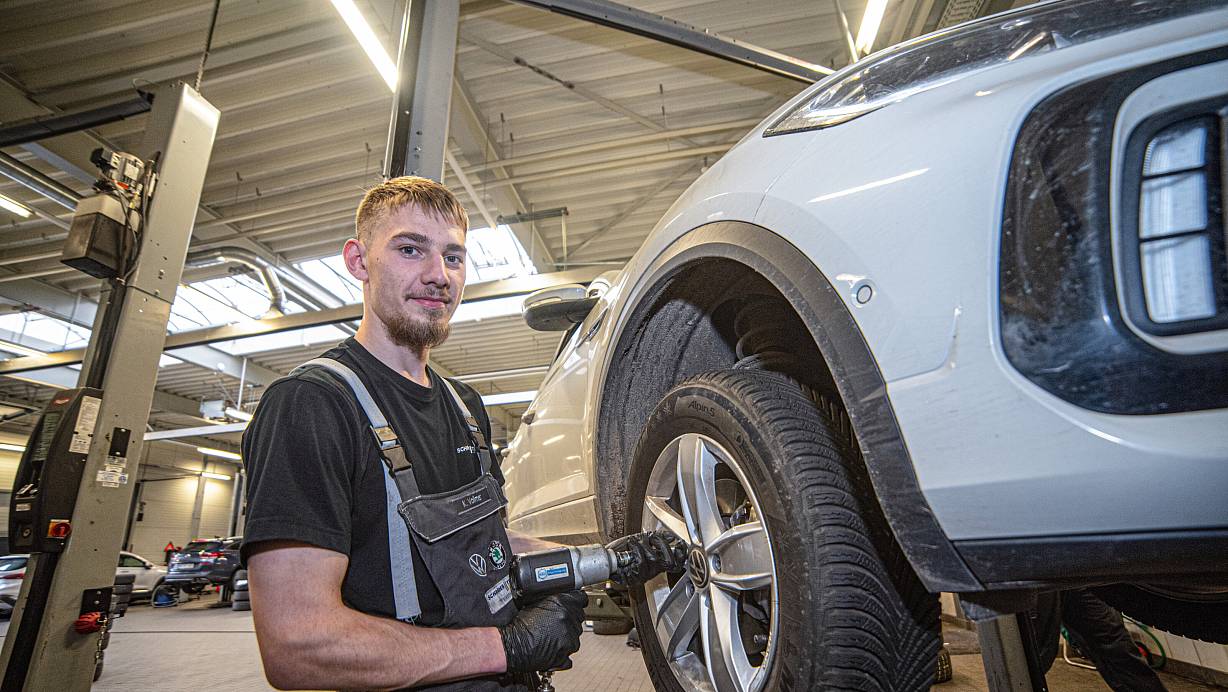 Kai Vollmer ist einer von zwölf Monteuren, die in der Hochsaison bei Schröder Teams am Stadtholz gemeinsam 400 Reifen pro Tag wechseln. | © Felix Brenneke