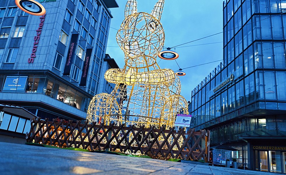 Ganz hat die Stadt die traditionellen Bäume auch nicht verbannt. Auf dem Alten Markt und am Rathaus stehen auch in diesem Jahr Weihnachtsbäume. Nur vom Jahnplatz bis zur Bahnhofsstraße habe die Stadt mit den Leuchttieren etwas Neues ausprobieren wollen, um die Innenstadt in der dunklen Jahreszeit zu beleben, sagt Julia Lehmann vom City-Management der Bielefelder Marketing GmbH.