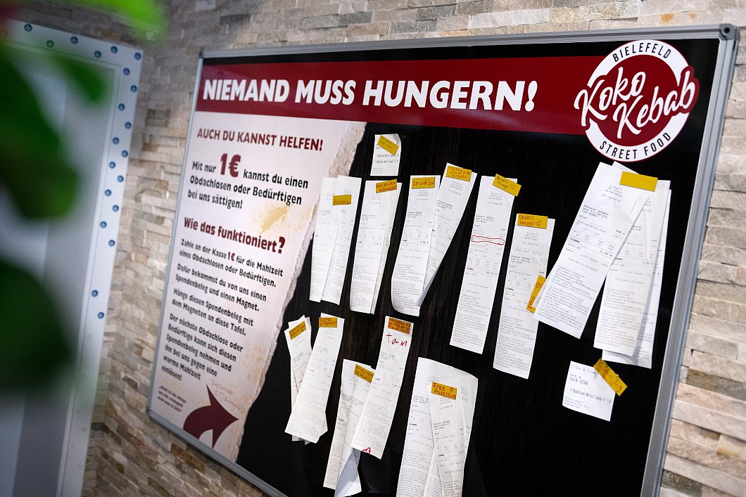 Auch die normalen Kunden können die Aktion solidarisch unterstützen. Wer seine Mahlzeit bezahlt, kann für die Aktion 1 Euro oder mehr zusätzlich bezahlen. Dann bekommt er dafür eine Spendenquittung, die für die Bedürftigen an einer Magnet-Wand gesammelt werden. Wer Hunger hat, kann diese Spendenbelege dann gegen eine Suppe oder einen Döner der Wahl eintauschen.